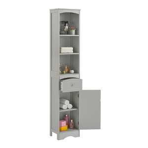 - [Space Saver]: With a slim and compact body, this cabinet will not occupy much room. Just put it in a corner and then you can get a space-saving bathroom furniture. This cabinet also equips with an anti-tip kit so can to protect it from tipping.