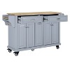 - Crafted with solid wood panels, this cart is built to last and features a range of convenient features, including a towel rack, spice rack, two large drawers, adjustable shelves, and sturdy casters for easy mobility.