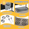 - Kitchen Playset: Our sandbox with lid includes a kitchen playset for kids who love playing house. This design includes a sink, stovetop, and cookware set with pots, pans, utensils, and lids. Merging a pretend world with the medium of sand provides extra activities and inspires longer-lasting play.