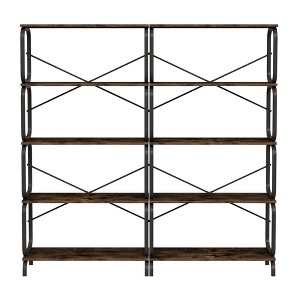 - [Five-tier Shelf Storage] The open design of this bookcase combines the charm of both minimalist and vintage furniture styles. Behind "X" design to stop things falling off and provides plenty of space to display and storage your books, decorations, plants, and other daily accessories.