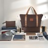 - Expandable duffel bag dimensions (front shape is trapezoidal): longest length: 21.7", shortest length: 15.7", width: 8.3", height: 13", expanded height: 17.7". The duffel bag comes with a trolley sleeve with zippered pocket, and you can conveniently attach it to the adjustable handle.