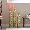 Metal decorative vase High Distress Metal center vase with 3D triangle pattern, set of 3 vases for home decoration 33.5 ", 29.5 ", 25.2 "high, gold