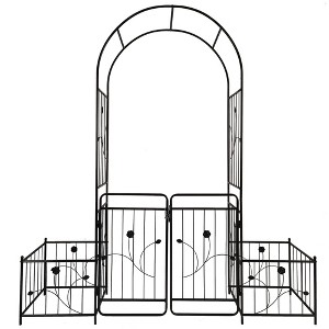 Nice Design: 86.6'' High x 79.5'' Wide. The double gate design of this garden arbor gives a sense of privacy in your garden. With two side planter stands, you can grow flowers directly beside the arch or put flower pots in the stands.