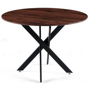 42.1"BLACK AND WOOD COLOR Table Mid-century Dining Table for 4-6 people With Round Mdf Table Top, Pedestal Dining Table, End Table Leisure Coffee Table,cross leg