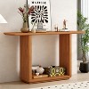 - Stylish Minimalist Design:This elegant console table features a sleek, minimalist design with gracefully curved corners, adding a touch of sophistication to any room. The natural wood veneer showcases beautiful grain patterns, enhancing its aesthetic appeal and ensuring it complements various decor styles.