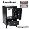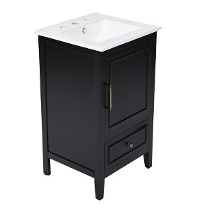 - Vanity with Cabinet & Door Shelf & A Drawer - This bathroom vanity has ample storage space: one cabinet with door, and a big drawer. You can put soaps, towels, shampoos, tissue paper and other bathroom essentials in it so to keep them away from dust.