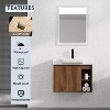 A space-efficient bathroom solution, this small wall-mounted vanity features a single-door design with soft-close hinges. The cabinet is thoughtfully designed with two open storage shelves, providing convenient organization for daily essentials.