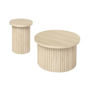 - Round set of two coffee tables, one large and one small, can be combined in a variety of ways, can be used side by side, can be used separately.