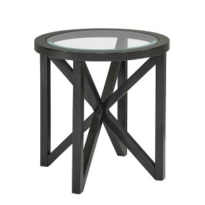 Dexmalle Modern Simple Tempered Glass End Table with Solid Wood Base