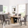 - Modern Minimalist Aesthetic – Featuring a V-shaped metal support base combined with wood finishes, this table offers a sleek, contemporary look that complements various home décor styles, adding sophistication to your dining room.