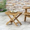 Give your outdoor seating ensemble a perfect companion that you can easily transport or store when not in use. With a classy rustic look, our side table brings a refined touch that is sure to impress guests and family alike. This accessory features stunning slat paneling and a foldable frame to enhance the way you utilize your backyard or patio space. Whether you are placing a chilled drink next to your lounge space or snacking on a plate of refreshments, our side table has you covered. Includes: One (1) Side Table Material: Acacia Wood Finish: Natural Hand-Crafted Details Assembly Required Dimensions: 15.00 inches deep x 22.75 inches wide x 18.25 inches high