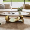 Faux Marble Oval Coffee Table with Contemporary Gold Stainless Steel Base