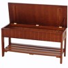 Give your entryway a welcoming look with the Rennes Cherry Finish Quality Solid Wood Shoe Bench With Storage. This bench provides a convenient place to sit, while also giving you storage for shoes or anything you want to keep organized. Open the bench to reveal even more storage for blankets, coats, toys and more. The sturdy wooden frame with slat top and sides has classic charm while a streamlined design gives a modern feel. Choose the available finish option that works with your decor.