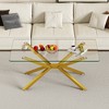 This glass coffee table features a tempered glass top and metal legs, bringing a modern feel to your indoor space.