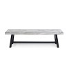 Turn to our gorgeous outdoor bench for adaptable style, comfort, and practicality. Our breathtaking bench boasts a slat panel top contributing to its modern industrial aesthetic. Built with acacia wood seating, this bench offers a completely approachable look that pairs beautifully with any of our outdoor dining tables. Backyard seating takes on a stylish and practical new meaning with our charming outdoor bench.