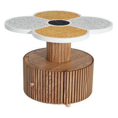 Dexmalle Rustic Round Coffee Table for Living Room,Brown