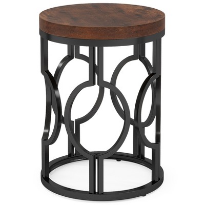 Dexmalle Rustic Snack End Table with Circle Metal Frame