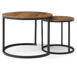 Set of 2 Coffee Table Nesting Side Round End Table Top Sturdy Metal Frame Desk Centerpiece Living Room Bedroom Apartment Modern Industrial Simple Nightstand