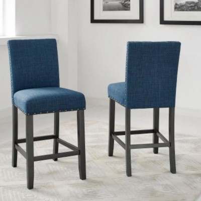 Dexmalle Set of 2 Fabric Bar Stools with Nailhead Trim,Tan