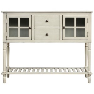 - Featuring spacious open table top and bottom shelf, two glass-front cabinets and two drawers, this sideboard provide you enough storage space for your favorite decorations or books or for storing necessities and tableware.