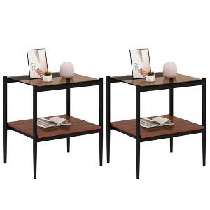 Set of 2 Rectangle End Table, Tempered Glass Tabletop with MDF layer, Modern Table for Living Room , Brown Glass