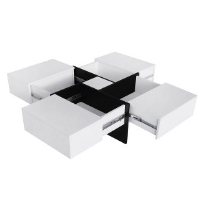 The square tabletop coated with stunning surface is divided into five sections by four straight lines, adding an interesting puzzle designed, which gives this coffee table an eye-catching look and sets it apart from traditional ones.