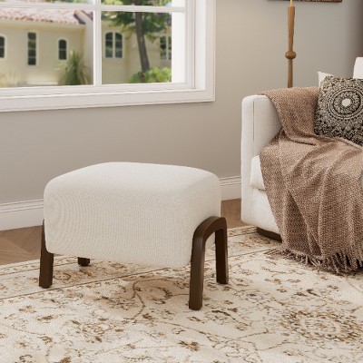 Dexmalle Upholstered Ottoman with Wooden Legs,White