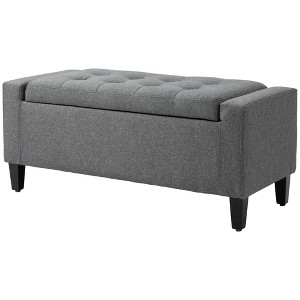 Storage Ottoman, Linen Upholstered Storage Bench with Lift Top and Button Tufted for Living Room, Gray