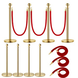 Velvet Ropes and Posts, 5 ft/1.5 m Red Rope, Stainless Steel Gold Stanchion with Ball Top, Red Crowd Control Barrier Used for Theaters, Party, Wedding, Exhibition, Ticket Offices 4 packSets