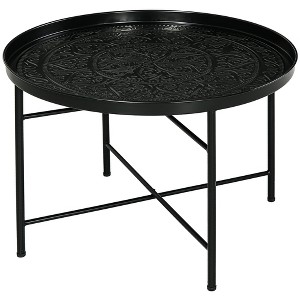 Dexmalle Vintage 24" Black Round Coffee Table with Hammered Tray Top