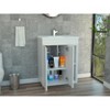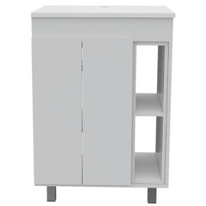 Freestanding vanities combine style and functionality with their versatile design, featuring two shelves ideal for displaying or storing items such as books and decor. The classic rectangular shape and white finish enhance any space, offering a clean, bright look that seamlessly complements various interior designs.