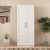 Our 2 door cabinet features an freestanding design, which you can use for pantry cabinet, food cabinet, kitchen cabinet, kitchen cupboard, utility cabinet, laundry room cabinets, bathroom cabinet, bedroom wardrobe, bookcase, tool cabinet, file cabinet, appliance cabinet, etc. It will be your good choice for storage and organization