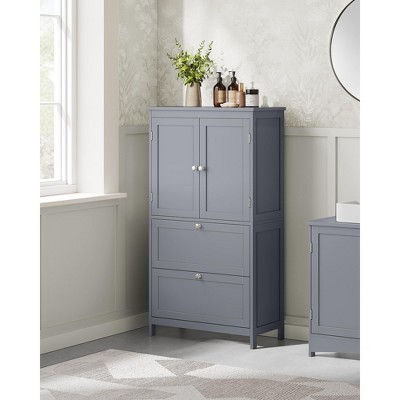 - Ample Storage: Upper enclosed cabinet with doors has two tiers to accommodate decorations or articles for daily use. As for lower part, there are two big drawers to provide more storage space.You can put stuff in it, such as shampoo, towel, body lotion, tissues and storage basket etc..