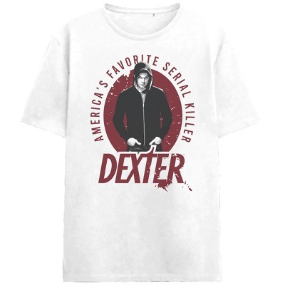 Dexter America's Favorite Serial Killer Adult White Crew Neck Short Sleeve T-shirt-3XL