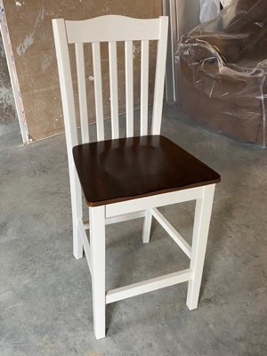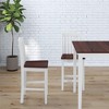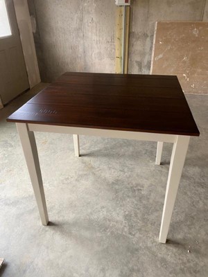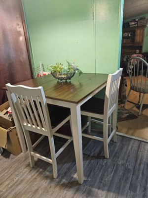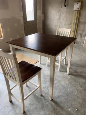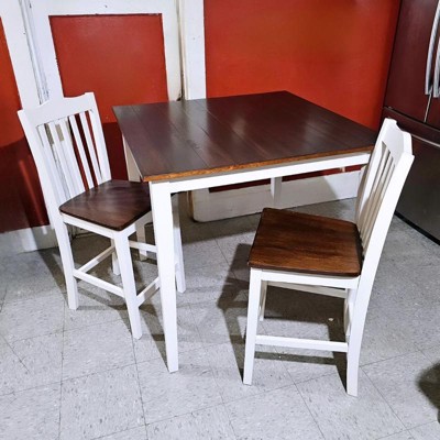 - CONTEMPORARY CHOICE: The two-tone counter height dining set includes one square dining table and two matching dining chairs with a creamy white base and country-style rustic mahogany top design that can be integrated into any kitchen and dining room