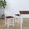 Everyone comes for the food; all stay for the conversation, and the DHP Shiloh 3-Piece Counter Height Dining Set will absolutely pave the way for some lively exchanges between family and friends. Perfectly sized to grace any contemporary kitchen or dining room, our apartment-friendly two-tone set consists of two counter-height dining chairs and one compact square dining table with a creamy white base and distressed woodgrain table and chair tops finished in rustic mahogany. The dining chairs feature open vertical slats and a camelback shape on the back, tapered legs with protective floor glides, and practical footrest bars. The paneled-looking dining table readily accommodates two people at mealtime but can seat two more guests with the additional purchase of our pair of matching dining chairs (sold separately), and the chairs easily tuck inside for a space-saving profile. Constructed from solid wood and engineered wood, the Shiloh is durable furniture that makes your house, big or small, feel like home.