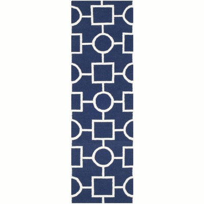 Dhurries DHU415 Hand Woven Runner Rug - Dark Blue - 2'6"x8' - Safavieh.