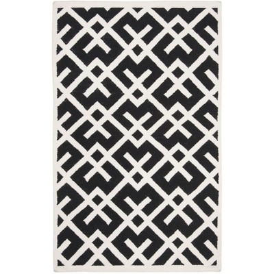 Dhurries DHU545 Hand Woven Flat Weave Indoor Area Rug - Black/Ivory - 5'x8' - Safavieh