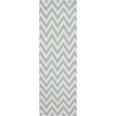 Dhurries DHU545 Hand Woven Flat Weave Indoor Runner Rug - Light Blue/Ivory - 2'6"x8' - Safavieh
