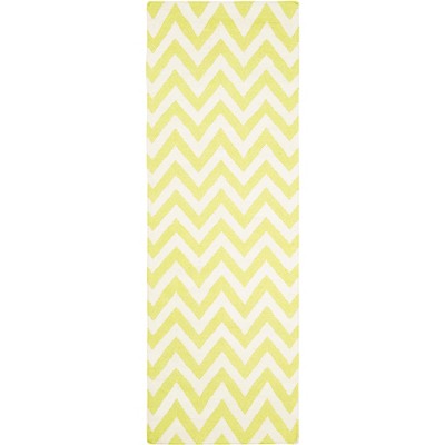 Dhurries DHU545 Hand Woven Flat Weave Indoor Runner Rug - Light Green/Ivory - 2'6"x10' - Safavieh