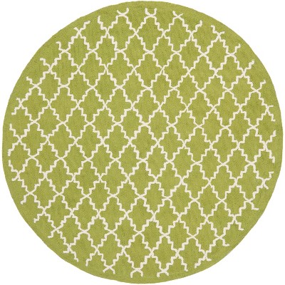 Dhurries DHU548 Hand Woven Flat Weave Indoor Area Rug - Olive/Ivory - 6' Round - Safavieh
