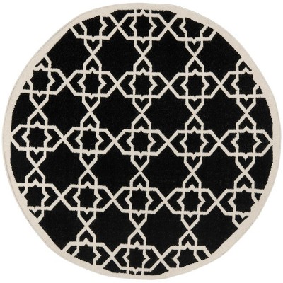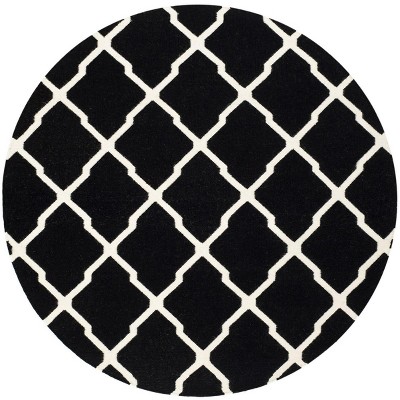 Dhurries DHU554 Hand Woven Flat Weave Indoor Area Rug - Black/Ivory - 6' Round - Safavieh