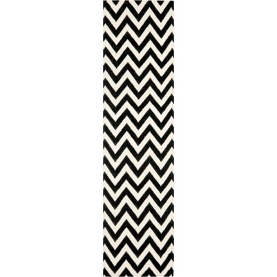 Dhurries DHU556 Hand Woven Flat Weave Indoor Runner Rug - Black/Ivory - 2'6"x10' - Safavieh