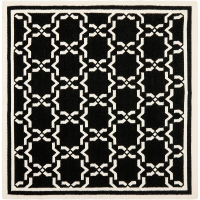 Dhurries DHU557 Hand Woven Flat Weave Indoor Area Rug - Black/Ivory - 8'x8' - Safavieh