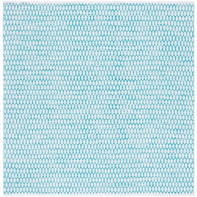 Dhurries DHU575 Hand Woven Flat Weave Indoor Area Rug - Aqua/Ivory - 6'x6' - Safavieh