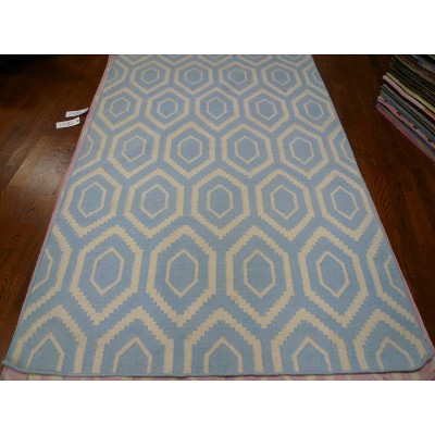 Dhurries DHU623 Hand Woven Flat Weave Indoor Area Rug - Blue/Ivory - 5'x8' - Safavieh