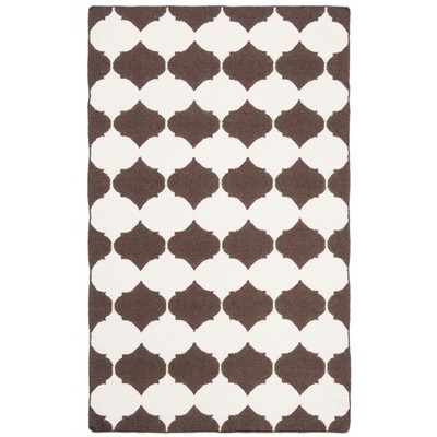 Dhurries DHU625 Hand Woven Area Rug - Brown/Ivory - 5'x8' - Safavieh..