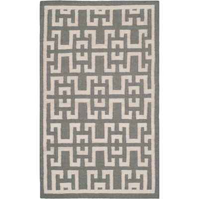 Dhurries DHU625 Hand Woven Area Rug - Grey/Ivory - 3'x5' - Safavieh.