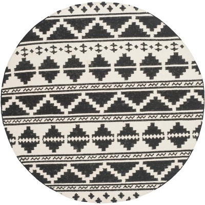 Dhurries DHU634 Hand Woven Area Rug - Black/Ivory - 6' Round - Safavieh.