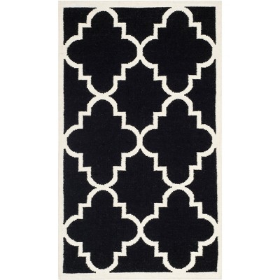 Dhurries DHU636 Hand Woven Area Rug - Black/Ivory - 3'x5' - Safavieh.